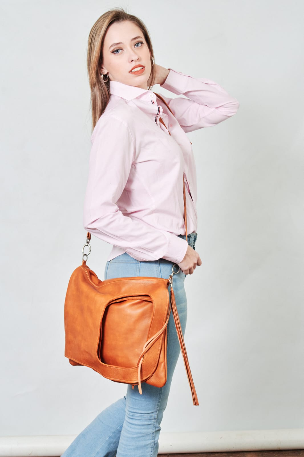 Se puede usar de tres maneras: al hombro, como bandolera y como sobre de mano.