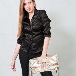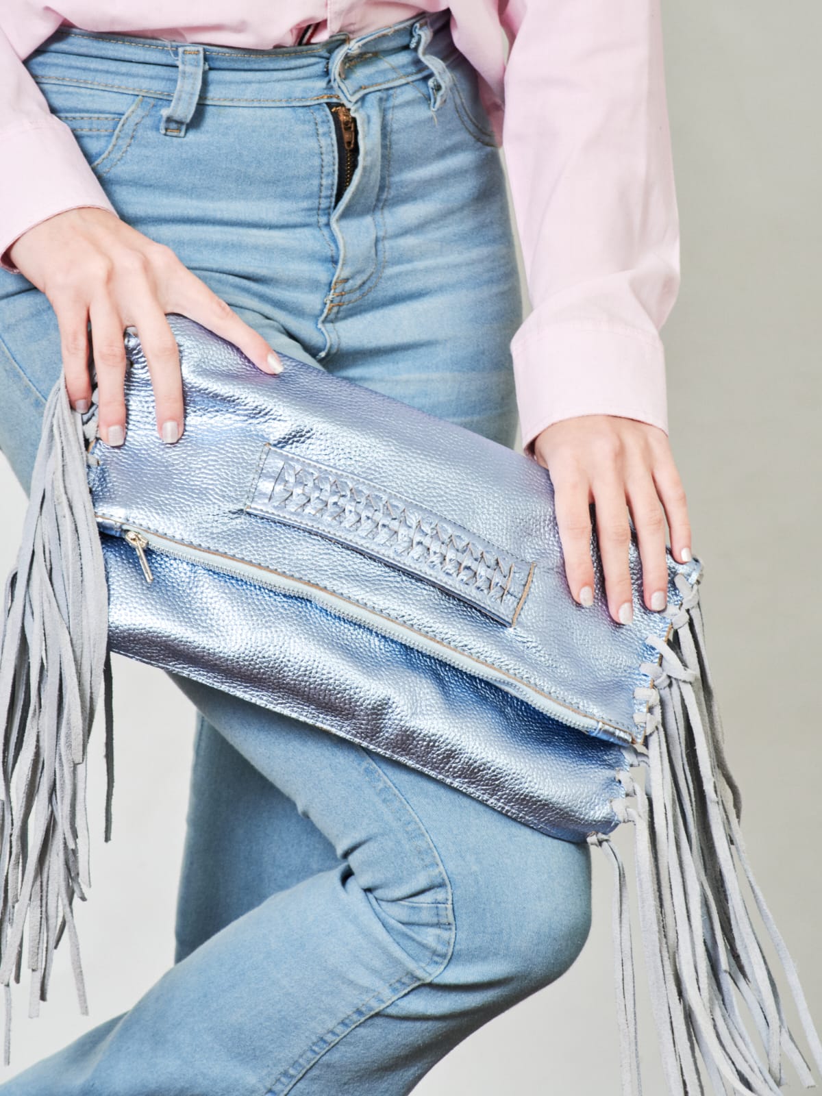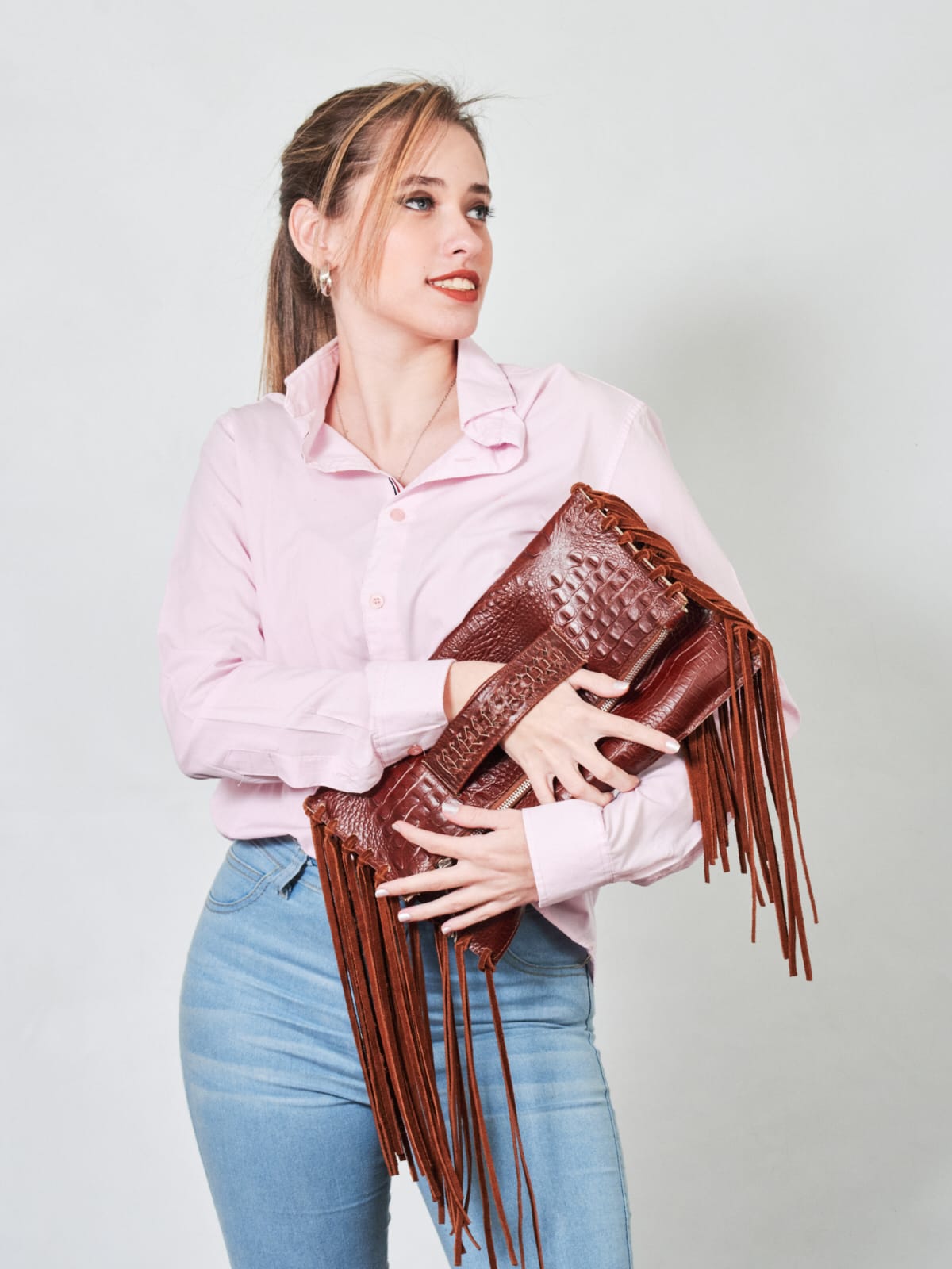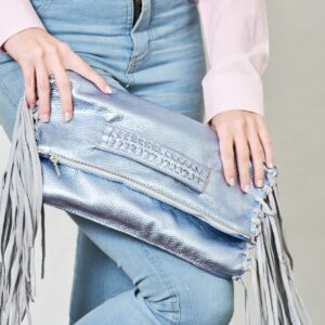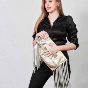 Su interior esta forrado y posee flecos en sus laterales.