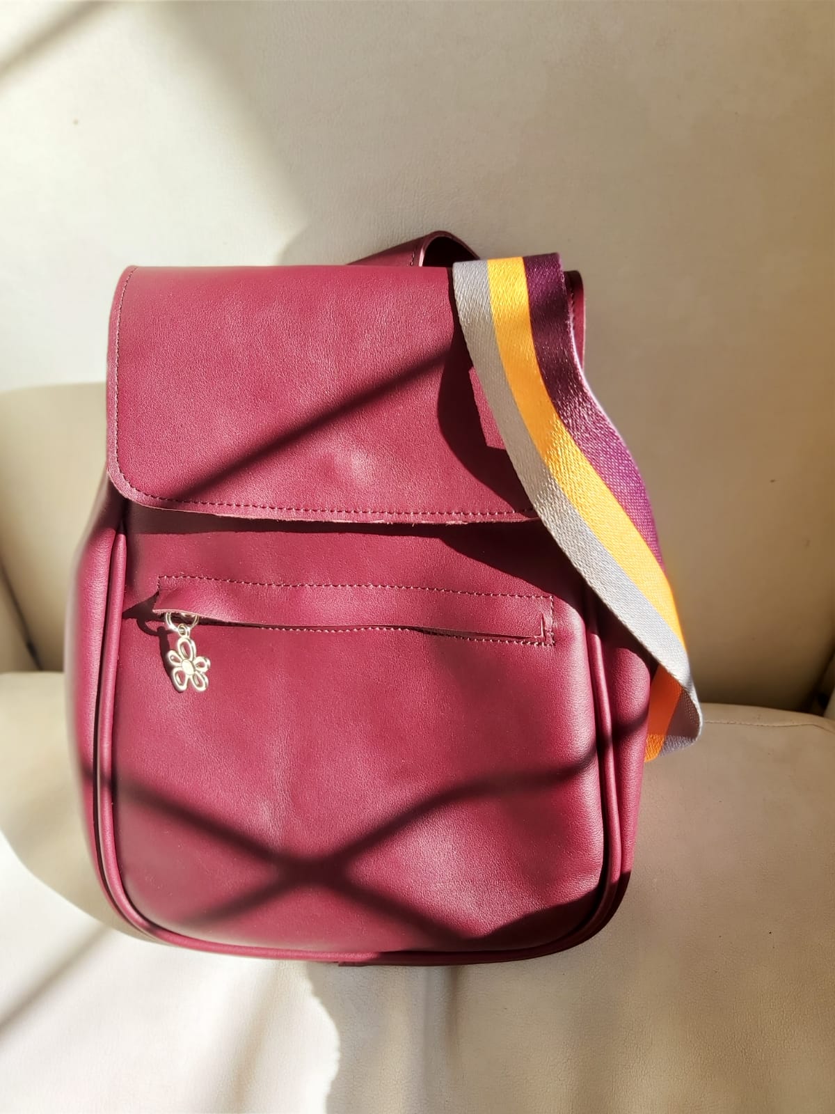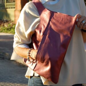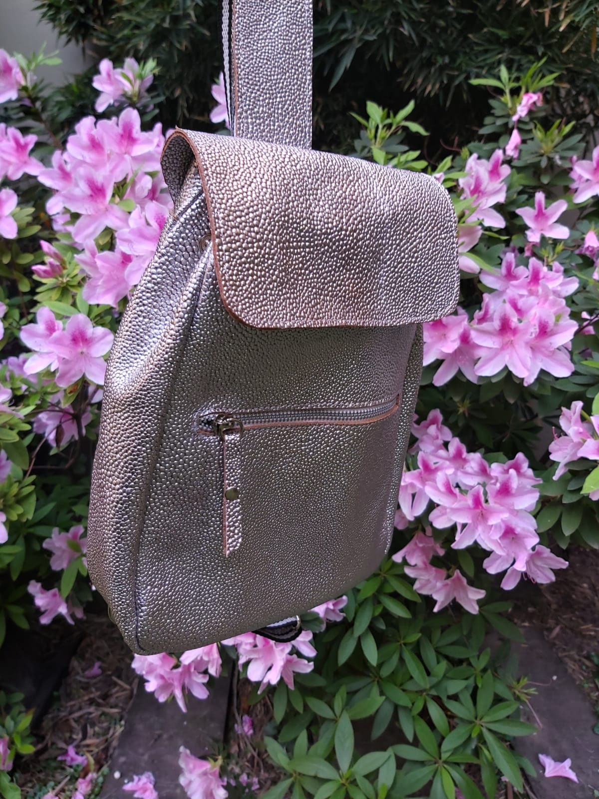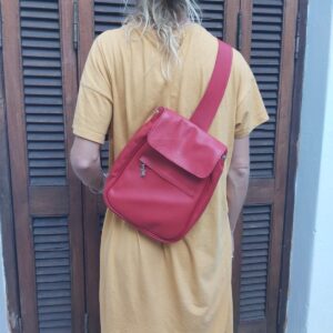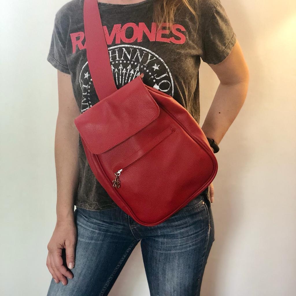 Mochila confeccionada en cuero vacuno.