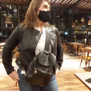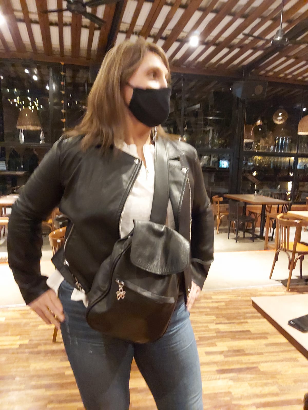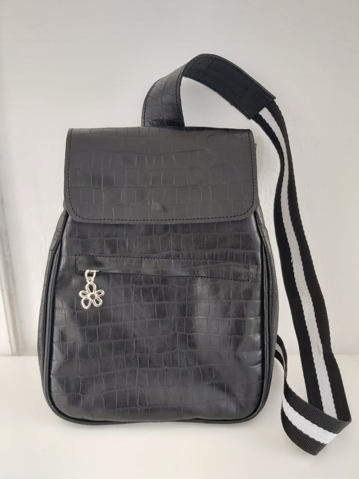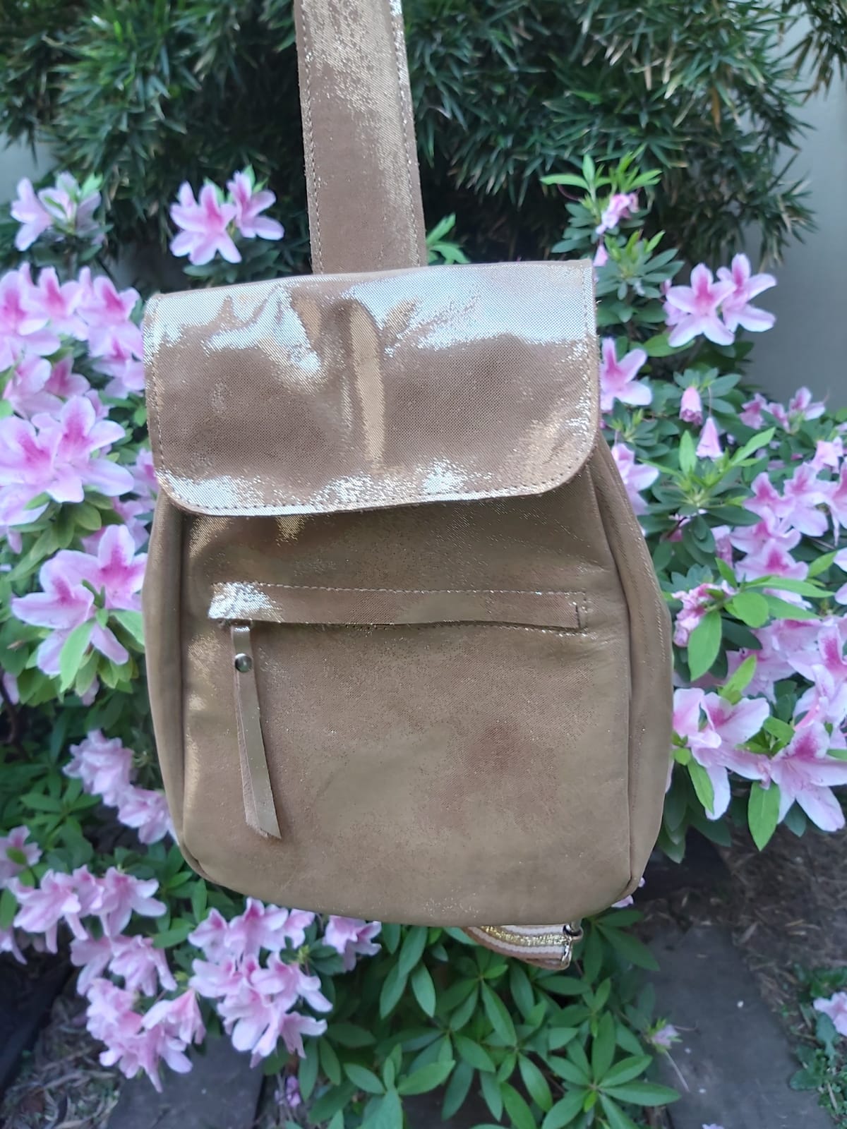 Mochila confeccionada en cuero vacuno.