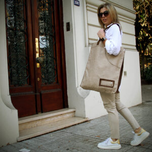 Cierra su interior con un broche iman y posee un mosqueten en sus laterales a fin de disminuir su tamaño y otorgarle mayor seguridad.